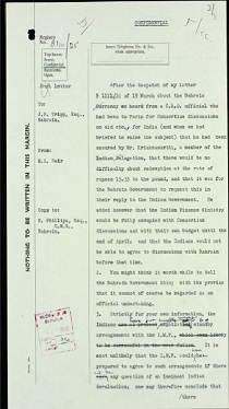 يتعلق هذا الملف بالعملة الموحدة المقترحة لإمارات الخليج، ويتضمن مراسلات بشأن: تأكيد المسؤولين الهنود على أنه لن تكون هناك أية صعوبة بشأن الاسترداد بمعدل 13.33 روبية مقابل الجنيه فيما يتعلق بالعملة البحرينية (25) التطورات عقب اجتماع دبي في الأول من مارس 1965، واقتراح عقد اجتماع مبكر لممثلي البحرين، وقطر، وأبوظبي، ودبي، وربما سلطنة مسقط وعُمان، والذي ينبغي أن يحضره آر. آي. هالوز، من بنك إنجترا (26) قبول البحرين بالاستنتاجات الرئيسة الواردة في تقرير هالوز، ورغبتها في المشاركة في عملة موحدة (27) آراء هالوز بشأن أفضل نهج يمكن اتباعه للاجتماع بممثلي الدول المعنية (29-32) التحضيرات لاجتماع تستضيفه البحرين ويحضره هالوز، ومسألة أيٍ من الدول ستقوم بإرسال ممثلين لها (34-36، 40) ملخص بالاختلافات الموجودة بين مسودة الاتفاقية التي أعدتها قطر، وتلك التي أعدها هالوز (37-38) أغراض مراقبة سعر الصرف في الخليج وترتيبات ذلك (41) اتفاقية معدلة للعملة الموحدة، ومذكرة توضيحية من هالوز إلى جميع الحكام المشاركين (43) تقرير هالوز ومحاضر اجتماعات العملة في البحرين اتُفق عليها؛ ذلك كان الاجتماع الأول من نوعه في الخليج، كما شهد الاجتماع جلوس ممثلي البحرين وقطر على نفس الطاولة لأول مرة منذ 14 عام (44) مسودة اتفاقية بديلة للدكتور حسن كامل التي طرحها الوفد القطري على جدول الأعمال (45) المشورة التي طلبها هالوز عن نقاط معينة تخص اتفاقية سيتم تقديمها إلى الحكام (46) مسألة ما إذا كانت البحرين ستقوم بالتفاوض بشكل مشترك أو منفصل مع الهند، بشأن مسألة عودة الروبية (48) وثيقة تم تسلمها تلامها من الملحق العسكري الأمريكي في بيروت، وهي عبارة عن نسخة من محضر اجتماع عن العملة الموحدة في البحرين (49)